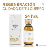 Aceite corporal para piel sensible ideal para calmar reacciones cutáneas diversas que cursan con picor o irritación provocados por el clima. Así como después de la depilación o tras exposición solar, efecto after-sun. Refresca la piel, calma la inflamación y molestias, además la regenera reduciendo la irritación.